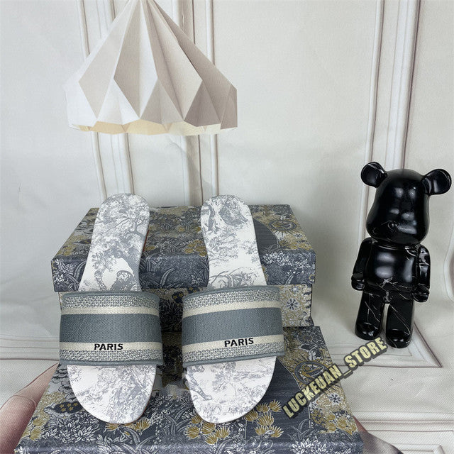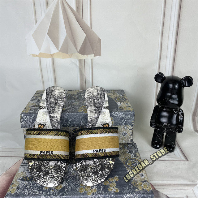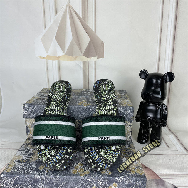 Women Sandals Woman Shoe Slipper Embroider Sandals Summer 2022 Women Slides Slipper Woman Flip Flop Slippers Floral Print